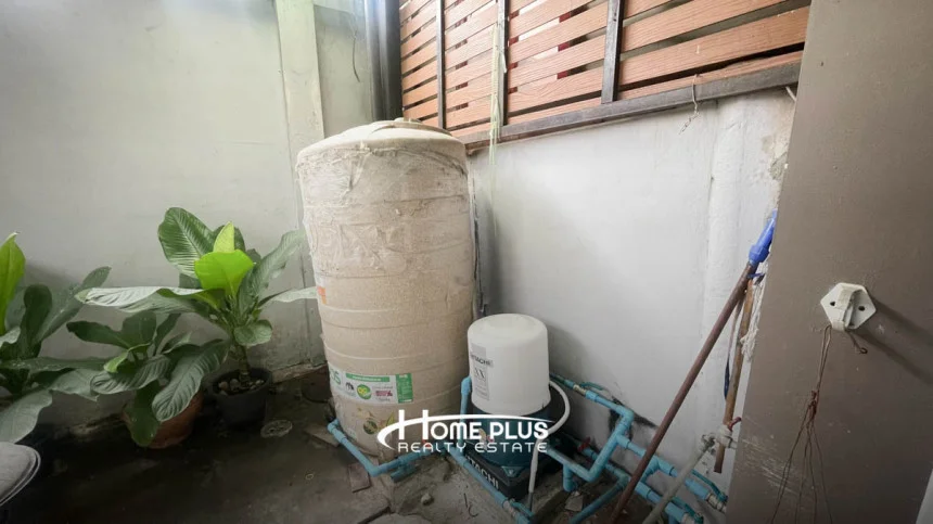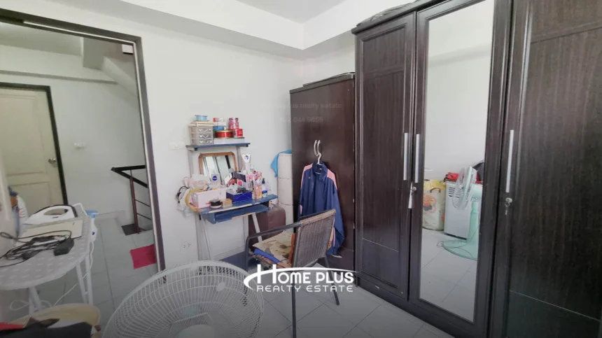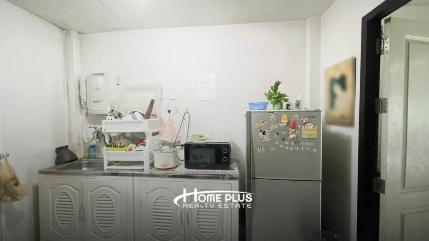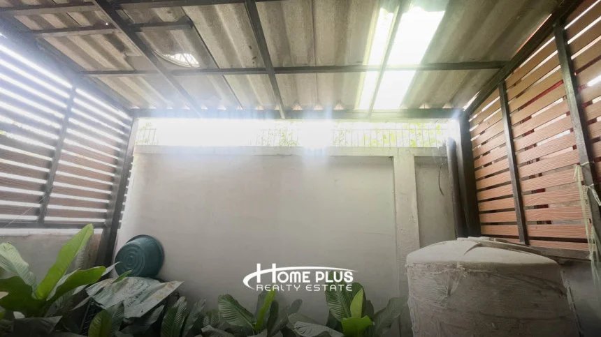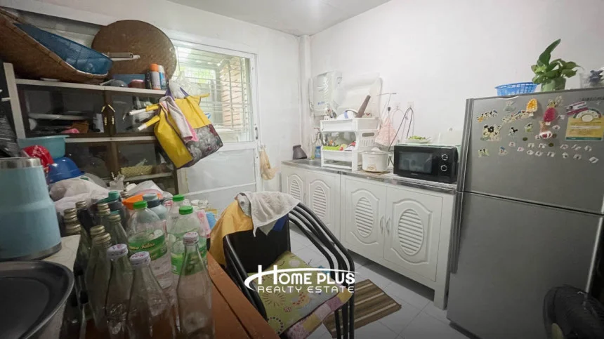 -ชั้น1 ภายในบ้าน พื้นปูด้วยกระเบื้องมีต่อเติมครัวหลัง ต่อเติมหลังคาโรงจอดรถฝ้าฉาบเรียบทั้งหลัง